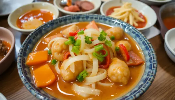 Commonly found at street stalls, eomuk is a fish cake skewered on a stick, often served in a warm broth. It's a perfect snack for those exploring the city, though it may not be for everyone!